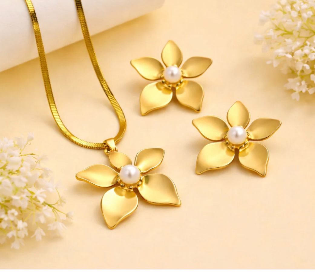 CLASSIC FIVE PETAL NECKLACE & EARRING SET