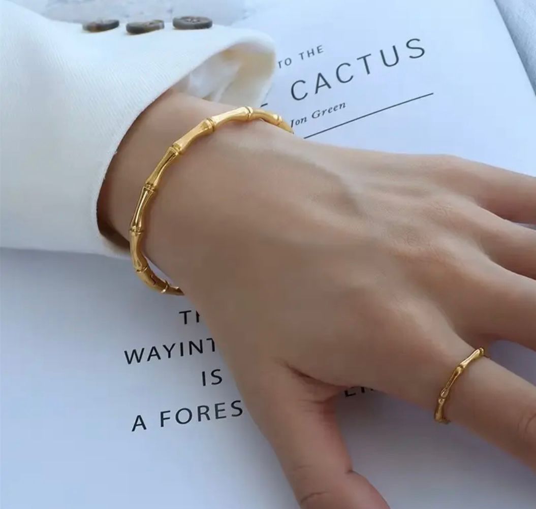 GOLD BAMBOO INSPIRED BANGLE BRACELET