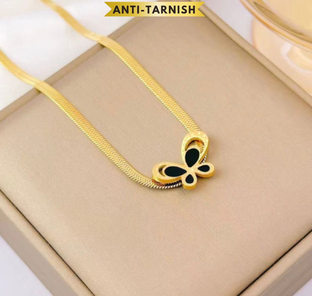 BLACK BUTTERFLY SNAKE CHAIN NECKLACE